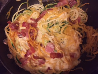 My fall-back when I haven't been eating pasta is spiralized vegetables, and I realised I'd never actually made a simple spaghetti carbonara using spiralized vegetables.